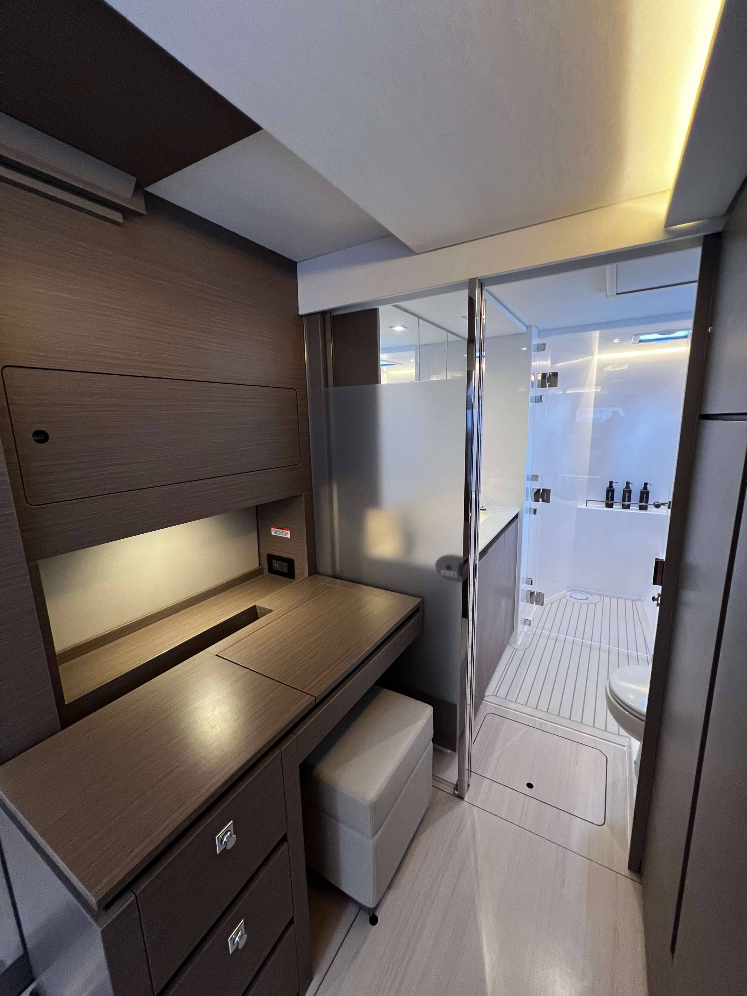Cabin Access: Guests use both aft cabins and one forward cabin; crew occupies the other forward cabin