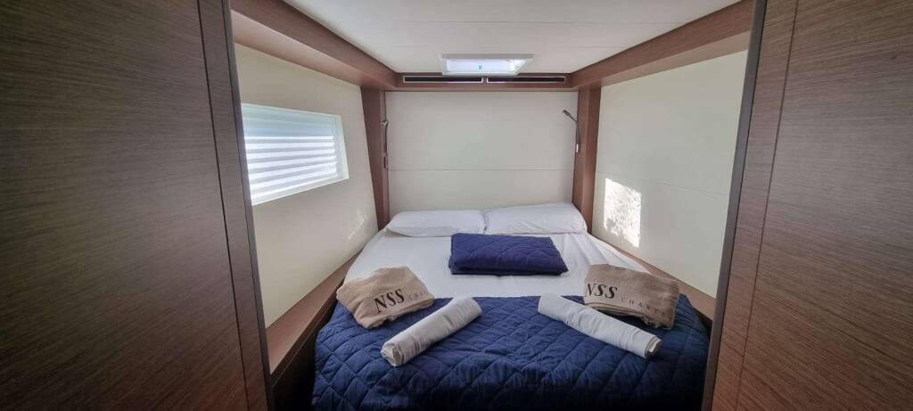 Catamarán de lujo con tripulación Baten Kaitos II, construido en 2021, está anclado en W. Med -Naples/Sicily. Tiene 6 camarotes y puede alojar a 12 personas.
