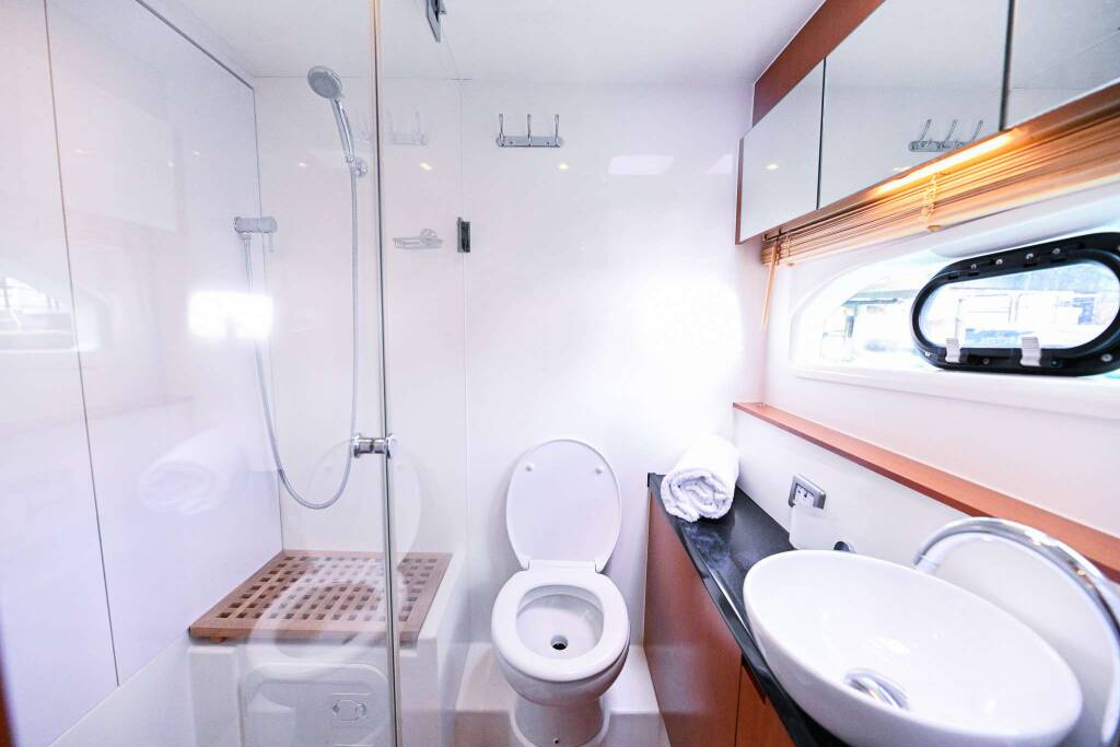 Catamarán de lujo con tripulación Beach Boomer I, construido en 2011, está anclado en Bahamas. Tiene 3 camarotes y puede alojar a 6 personas.
