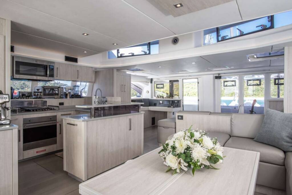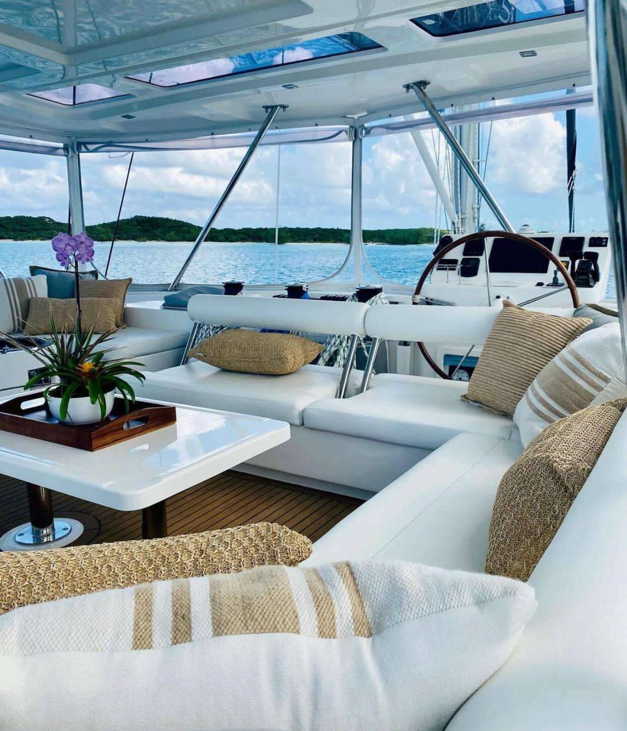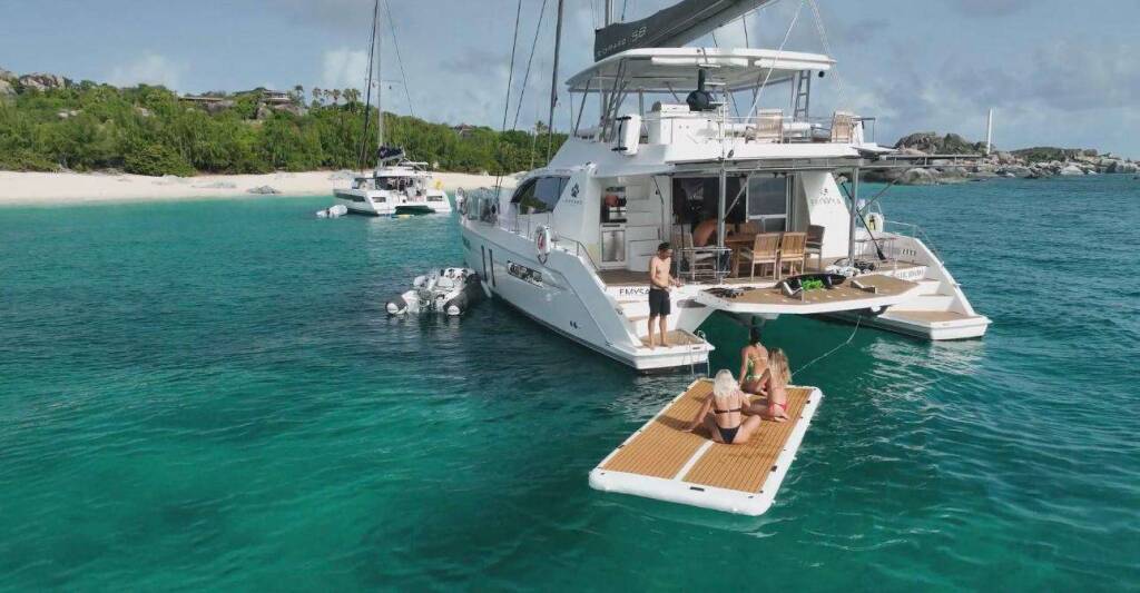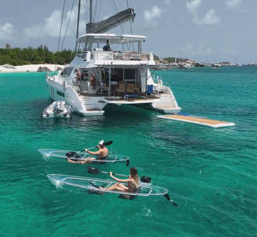 Catamarán de lujo con tripulación EMYSA, construido en 2019, está anclado en Caribbean Virgin Islands (BVI). Tiene 3 camarotes y puede alojar a 6 personas.