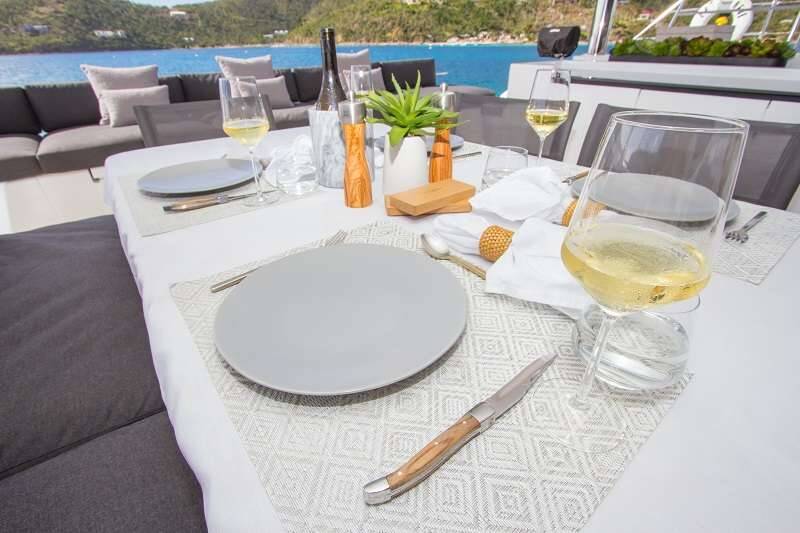 Catamarán de lujo con tripulación LE REVE L620 ESSENCE, construido en 2017, está anclado en Caribbean Virgin Islands (US/BVI), USA - New England. Tiene 3 camarotes y puede alojar a 6 personas.