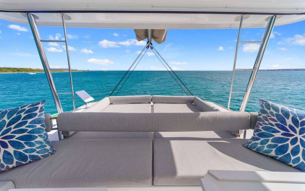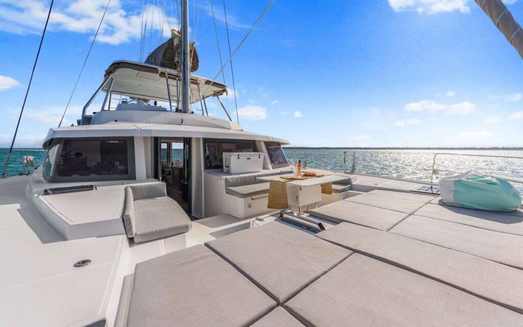 Catamarán de lujo con tripulación NAUTI DOGS 5.4, construido en 2022, está anclado en Bahamas. Tiene 4 camarotes y puede alojar a 8 personas.