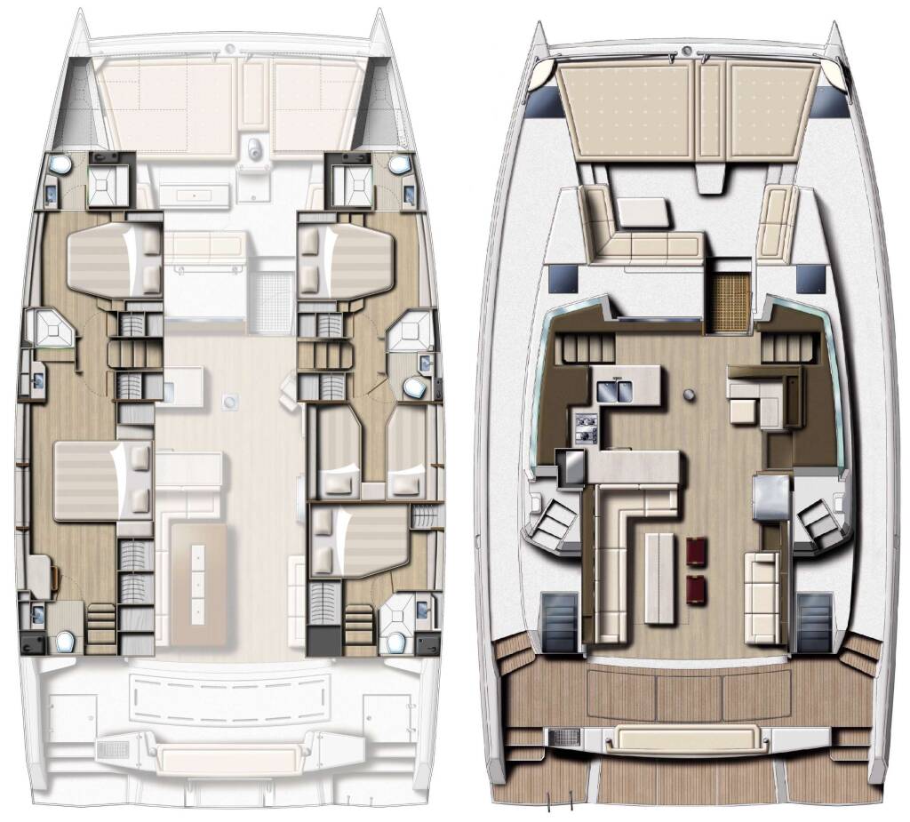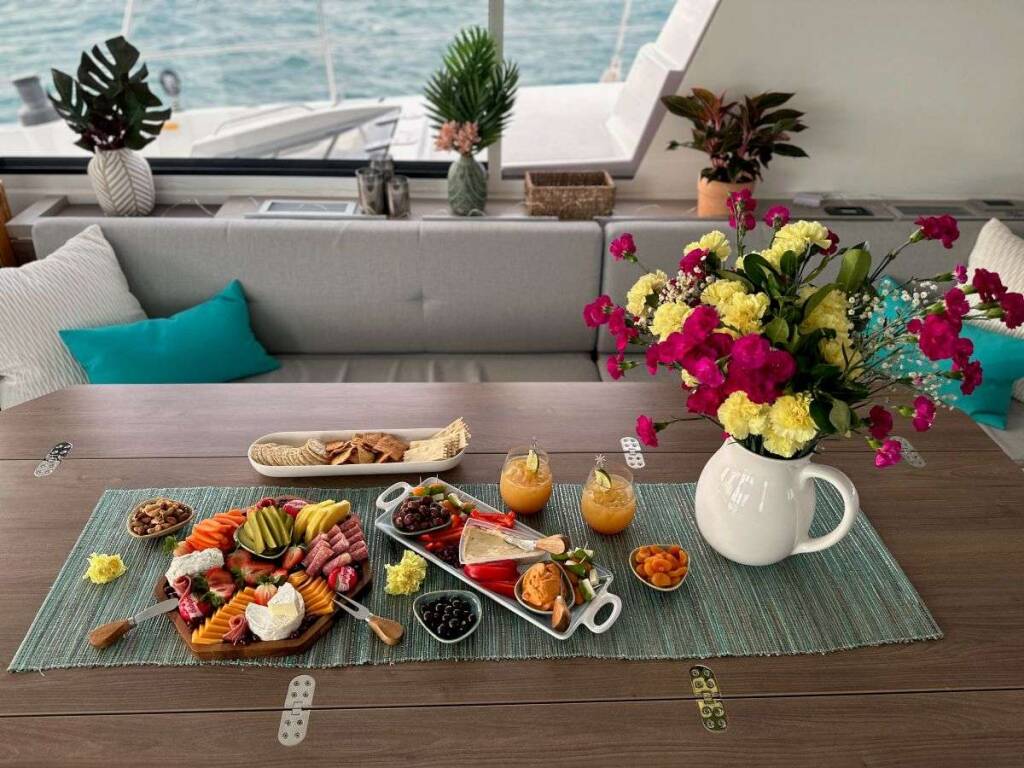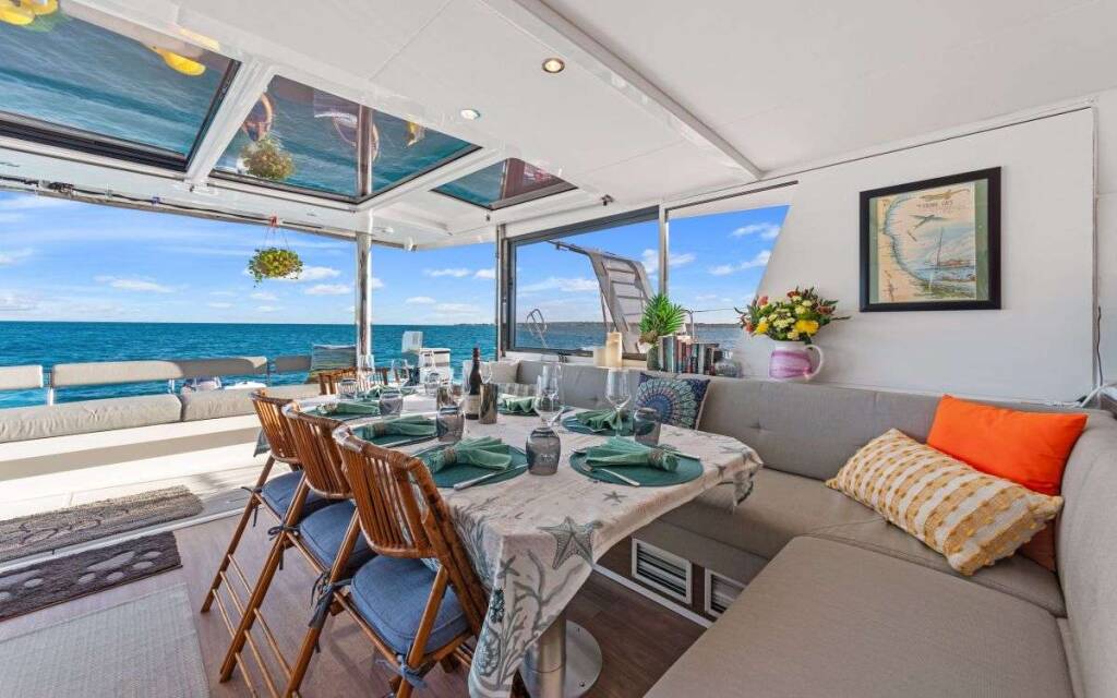 Main deck has a bright and airy main salon (fully air-conditioned) as the galley direct access to the forward cockpit lounge area.
