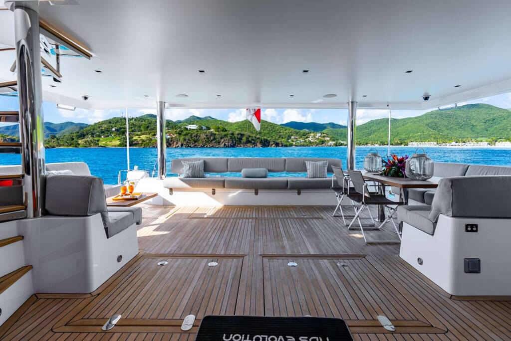 Catamarán de lujo con tripulación NDS EVOLUTION, construido en 2018, está anclado en Croatia, Croatia - Skradin. Tiene 4 camarotes y puede alojar a 9 personas.