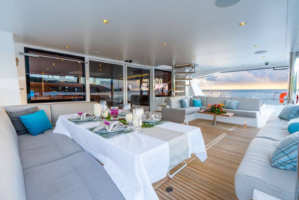 Accommodation: She can accommodate up to 9 guests sleeping on board. The full beam Master Stateroom with its panoramic view includes a private access to the forward deck, with a serene corner lounging area. Also included is a 3 single bed stateroom, perfect for the kids, and 2 more double bed VIP staterooms. All staterooms have ensuite bathroom. The forward part is dedicated to the crew with the captain’s cabin, a twin cabin, a large galley with crew mess.