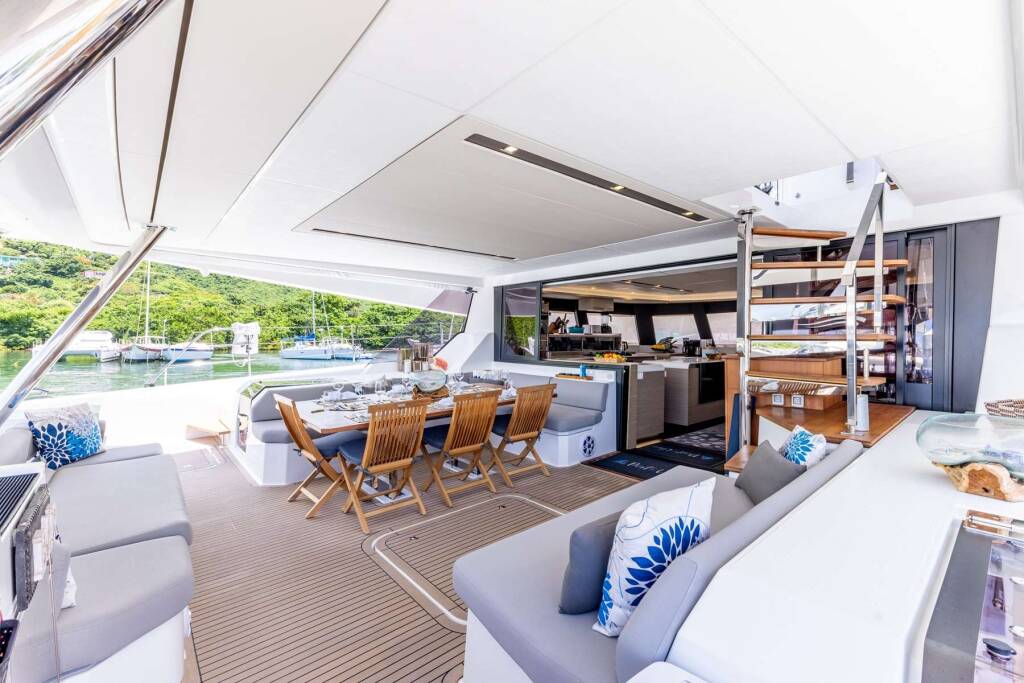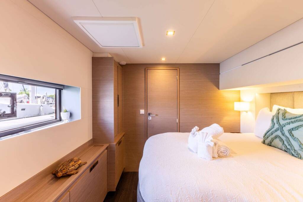 Catamarán de lujo con tripulación PORT TO VINO Samana 59, construido en 2023, está anclado en Caribbean Virgin Islands (BVI). Tiene 4 camarotes y puede alojar a 8 personas.