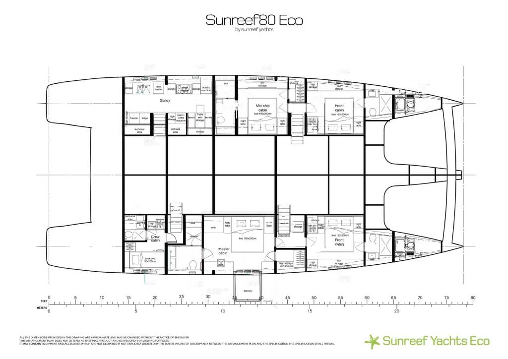 Catamarán de lujo con tripulación Sunreef Eco 80 2024, construido en 2024, está anclado en W. Med -Naples/Sicily, W. Med -Riviera/Cors/Sard.. Tiene 4 camarotes y puede alojar a 8 personas.