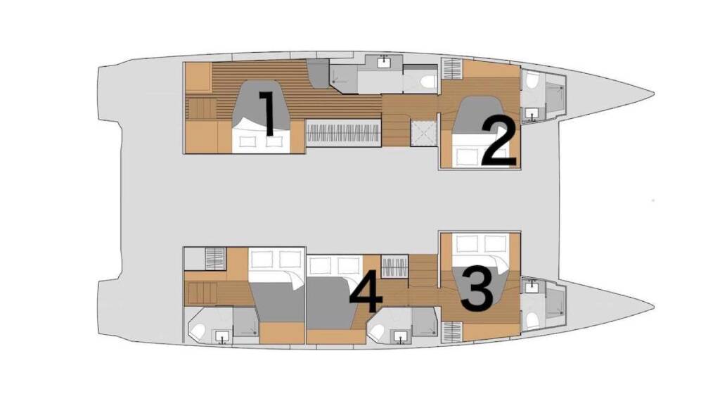 Catamarán de lujo con tripulación TEDAVI, construido en 2022, está anclado en Caribbean Virgin Islands (US/BVI), Caribbean Virgin Islands (US). Tiene 4 camarotes y puede alojar a 8 personas.