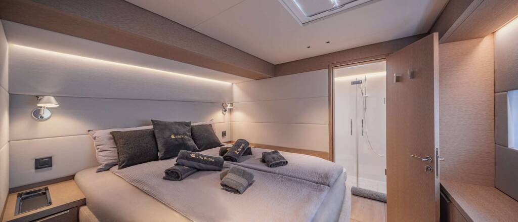Catamarán de lujo con tripulación Triwing Endor - Summer, construido en 2024, está anclado en Croatia. Tiene 4 camarotes y puede alojar a 8 personas.