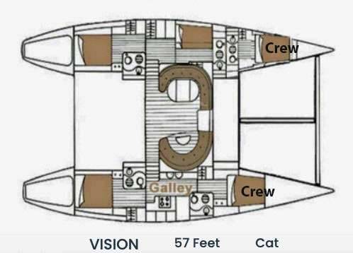 *VISION is a 3 cabin Charter Catamaran (3 doubles or 2 doubles and 1 bunk with 2 twins). Please inquire about the possibility of accommodating 7/8 pax charters, only for families with children.