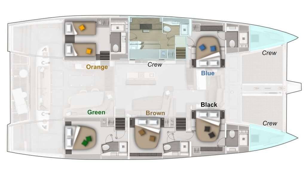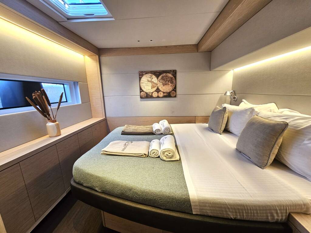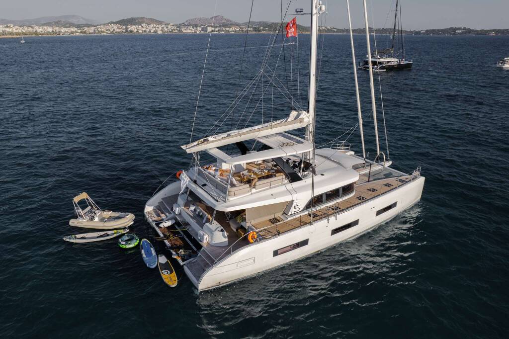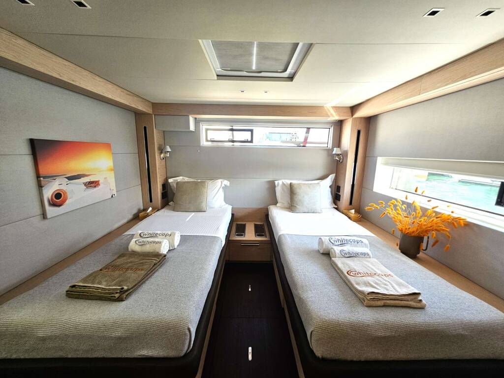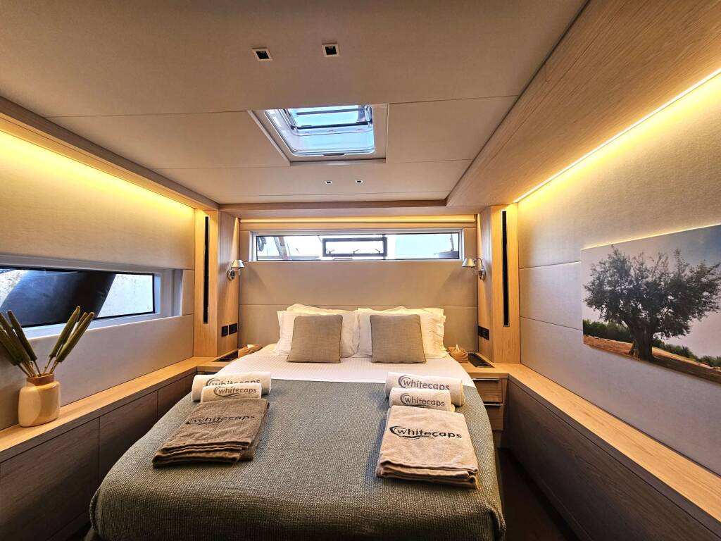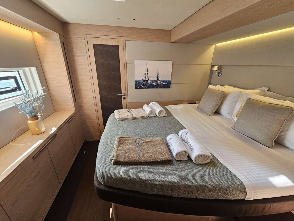 Catamarán de lujo con tripulación WHITE CAPS, construido en 2021, está anclado en Greece. Tiene 5 camarotes y puede alojar a 10 personas.