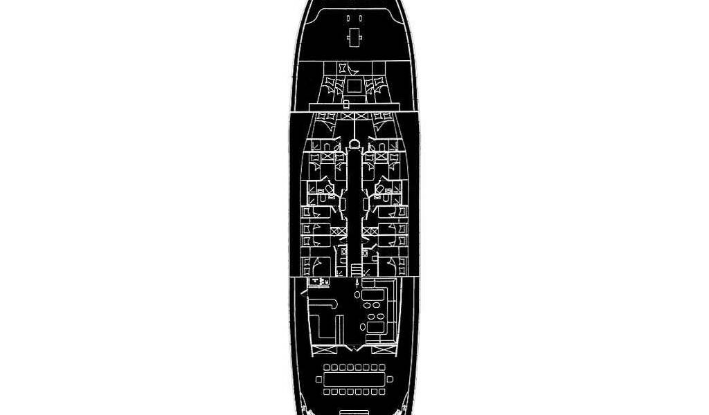 Accommodation: 2 Triple Cabins with 1 double bed (200cm x 150cm) & 1 single bed (200cm x 90cm) each