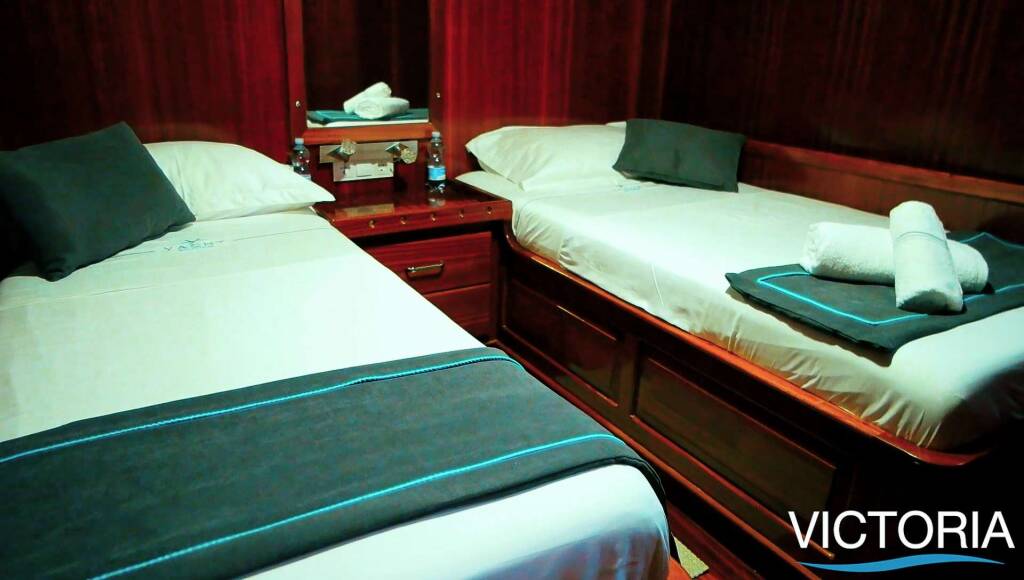 Accommodation: Victoria can accommodate 12 guests in comfort, with two master cabins, one twin-bed cabin and