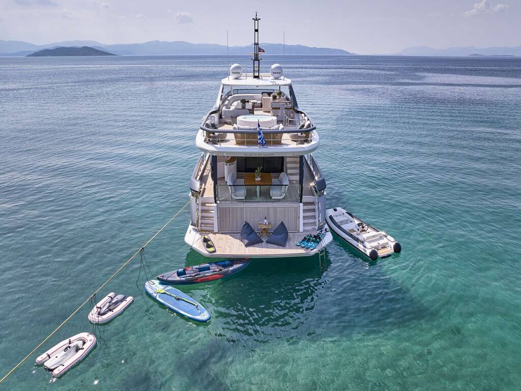 Yate de lujo ALADDIN SANE, construido en 2024, está anclado en Greece. Tiene 5 camarotes y puede alojar a 8 personas.