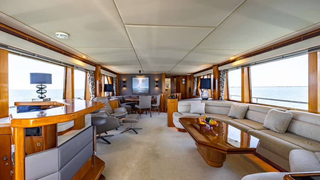 Motor Engines: 2 x 400 HP Cummins (2018) Generators: 1 x 50 kW Onan generator in sound Octomarine water maker 200 LPH shield box, 1 x 18 kW Fischer Panda PMG 123 (2018) Stabilizers: Naiad 360 Zero-Speed (2018)