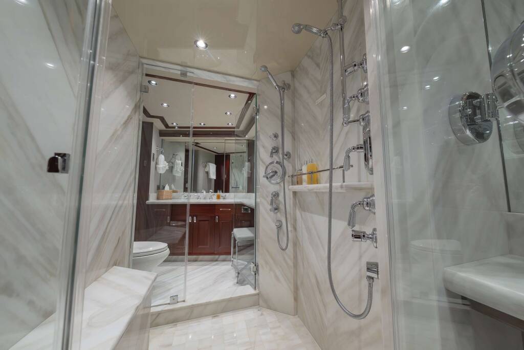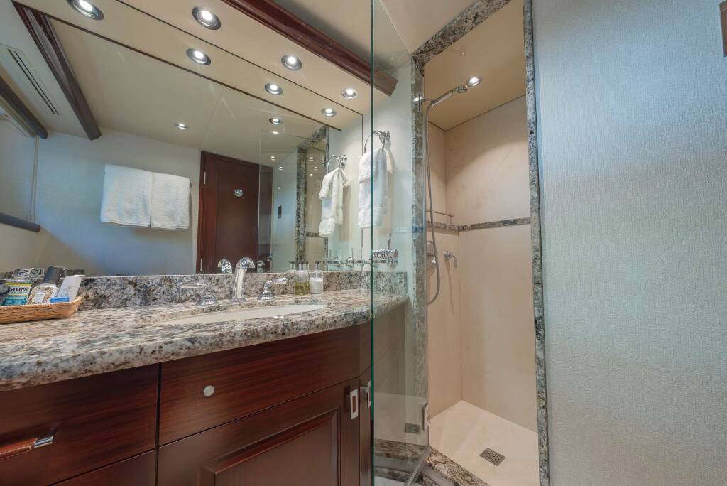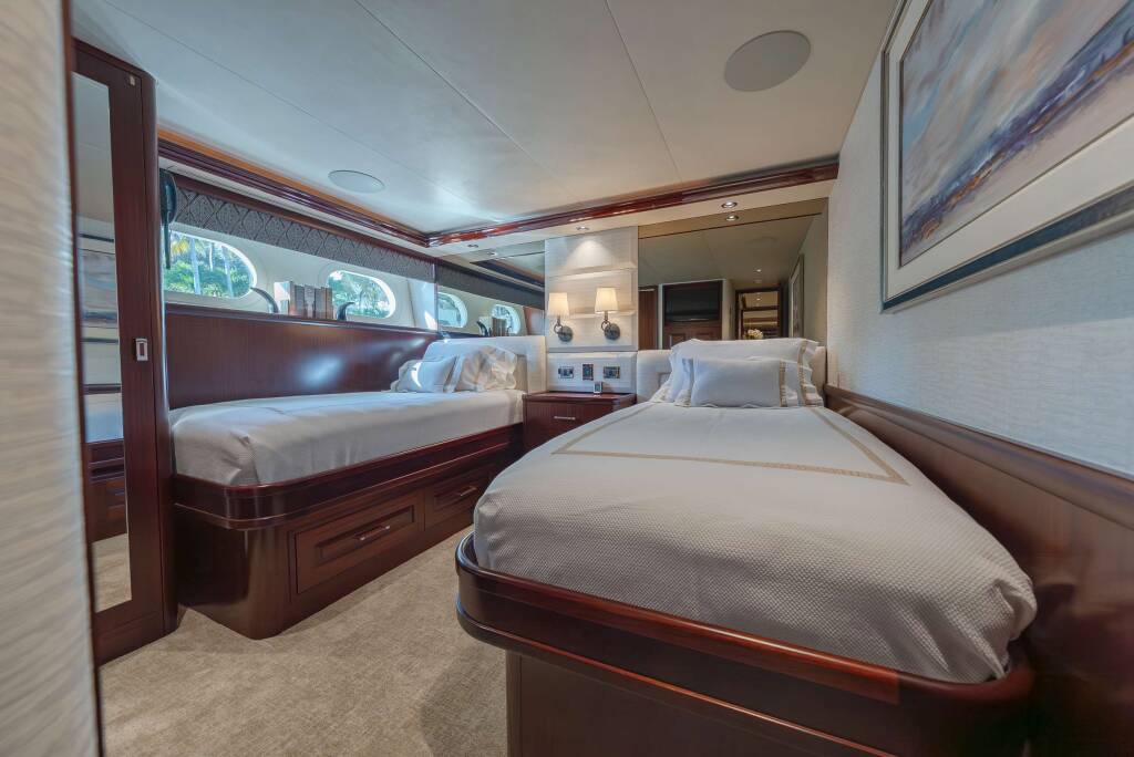 1 Twin Cabin, 1 Queen Cabin, 1 V-berth Queen cabin forward. All with en-suites