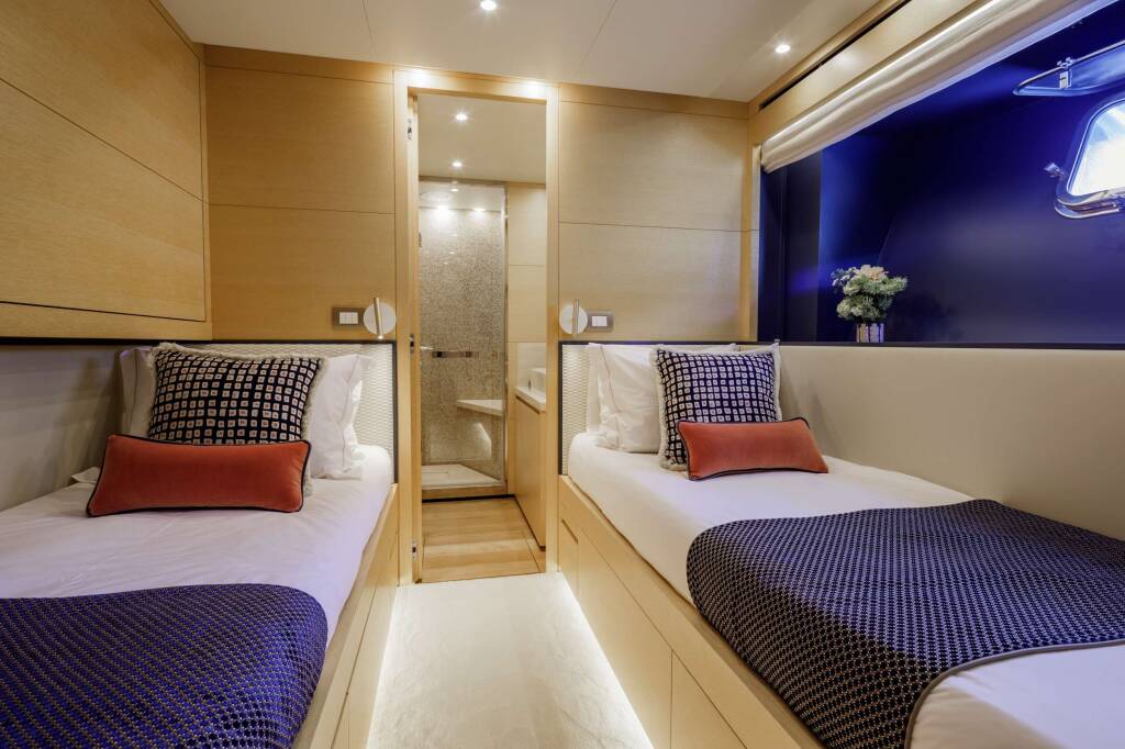 Accommodation: M/Y Elysium can welcome up to 12 guests in five en-suite cabins. There is a Master cabin on the main deck, 2 VIP cabins and 2 twin cabins on the lower deck.
