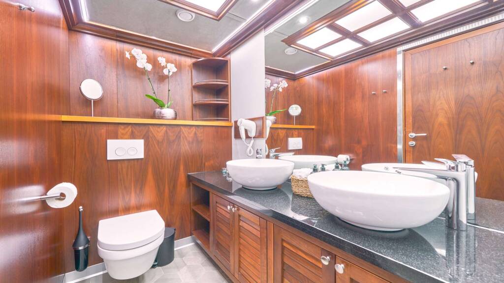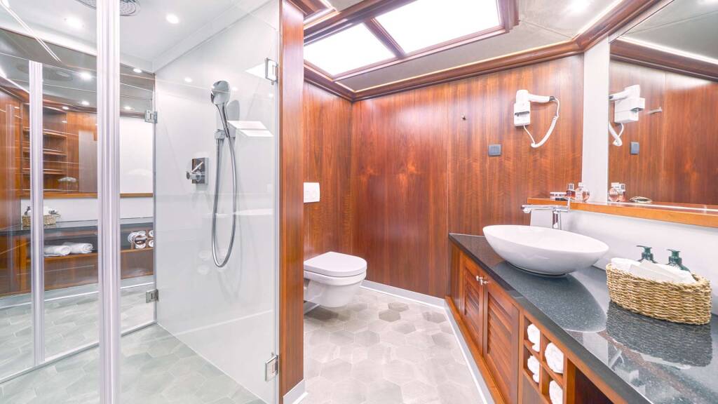 Accommodation: LOWER DECK: 6 guest cabins for 12 guests; 2 master cabins, 4 regular double bed cabins 2 of which with convertible beds 1.