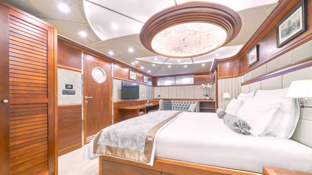 Aft Master cabin: 28.5 m2 bedroom: 20 m2 (king size bed) walk-in closet: 3.5. m2 bathroom: 5 m2