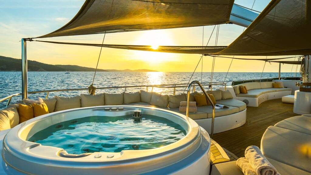 SUN DECK: 88m2, Jacuzzi, bar, lounge, and sunbathing area