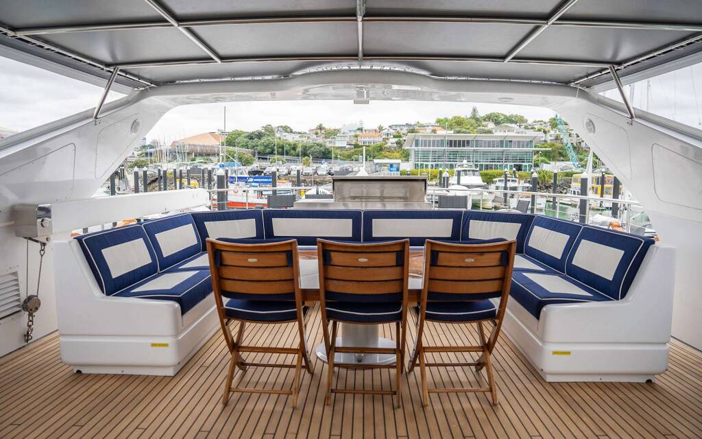 Yate de lujo LIBERTE, construido en 1999, está anclado en New Zealand. Tiene 4 camarotes y puede alojar a 10 personas.