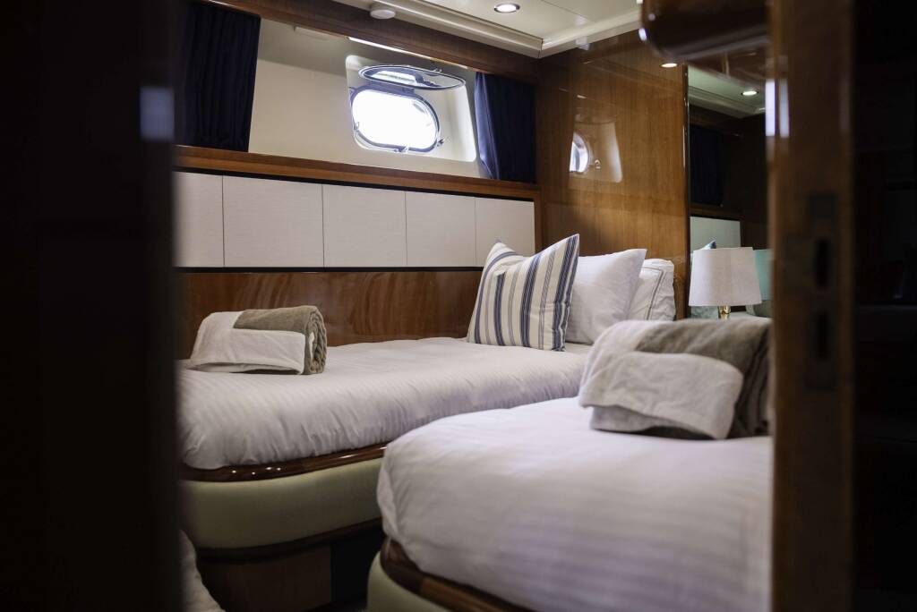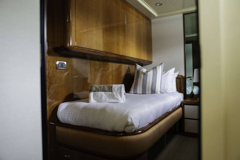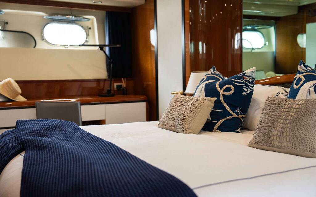 Accommodation: Four staterooms with en-suites. Full beam master and VIP with king and queen beds respectively. Two twin staterooms with Pullmans.
