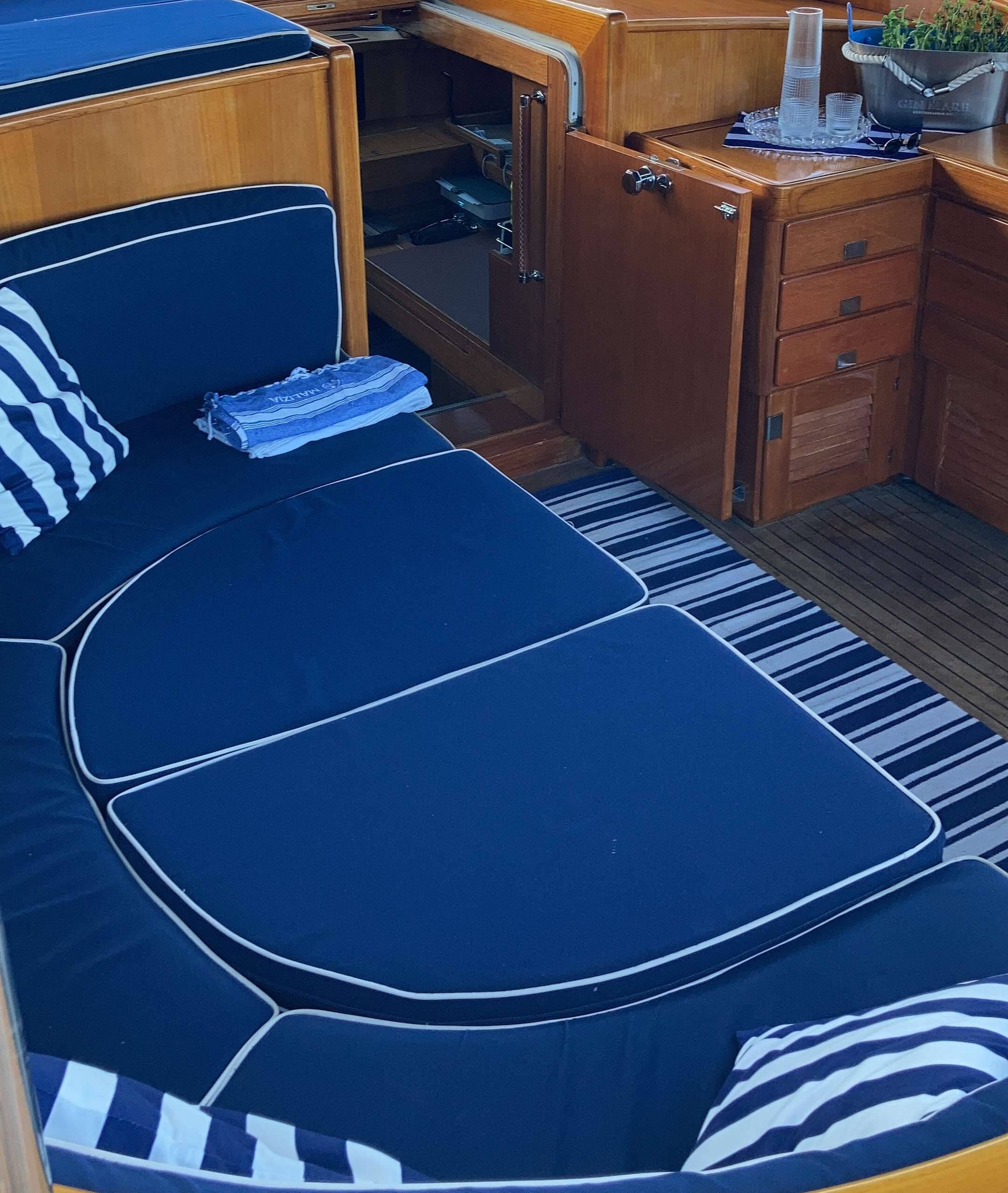 The cockpit has a cover that protects guests from both sun and rain with the possibility to add side sliding protection from the wind. This ensures maximum enjoyment of this magnificent space even with cool evenings at the end of the summer season or days that are more windy.
