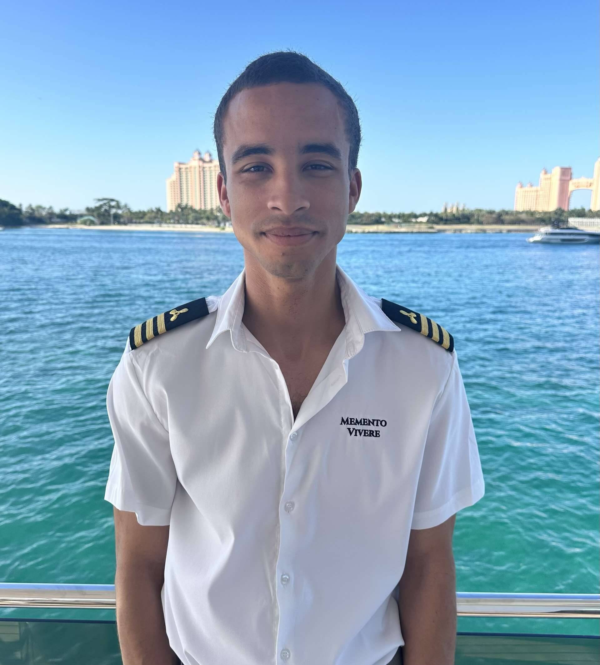 Meet Marnus, MV’s First Mate - part maritime expert and part morale booster. Hailing from Senekal, South Africa, he swapped the bushveld for the open ocean in 2020, thanks to a captain from his hometown who wisely saw his potential (or just needed a really good deckhand). But don’t let the polished uniform fool you—before yachting, he was shaping young minds as an English teacher in South Korea and Vietnam, and as an au pair in Texas (because even cowboys need life lessons).