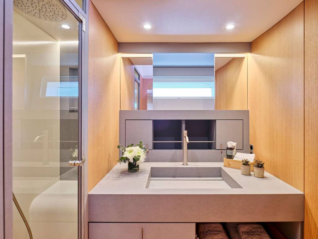 Yate de lujo NADAMAS, construido en 2022, está anclado en Greece. Tiene 4 camarotes y puede alojar a 8 personas.