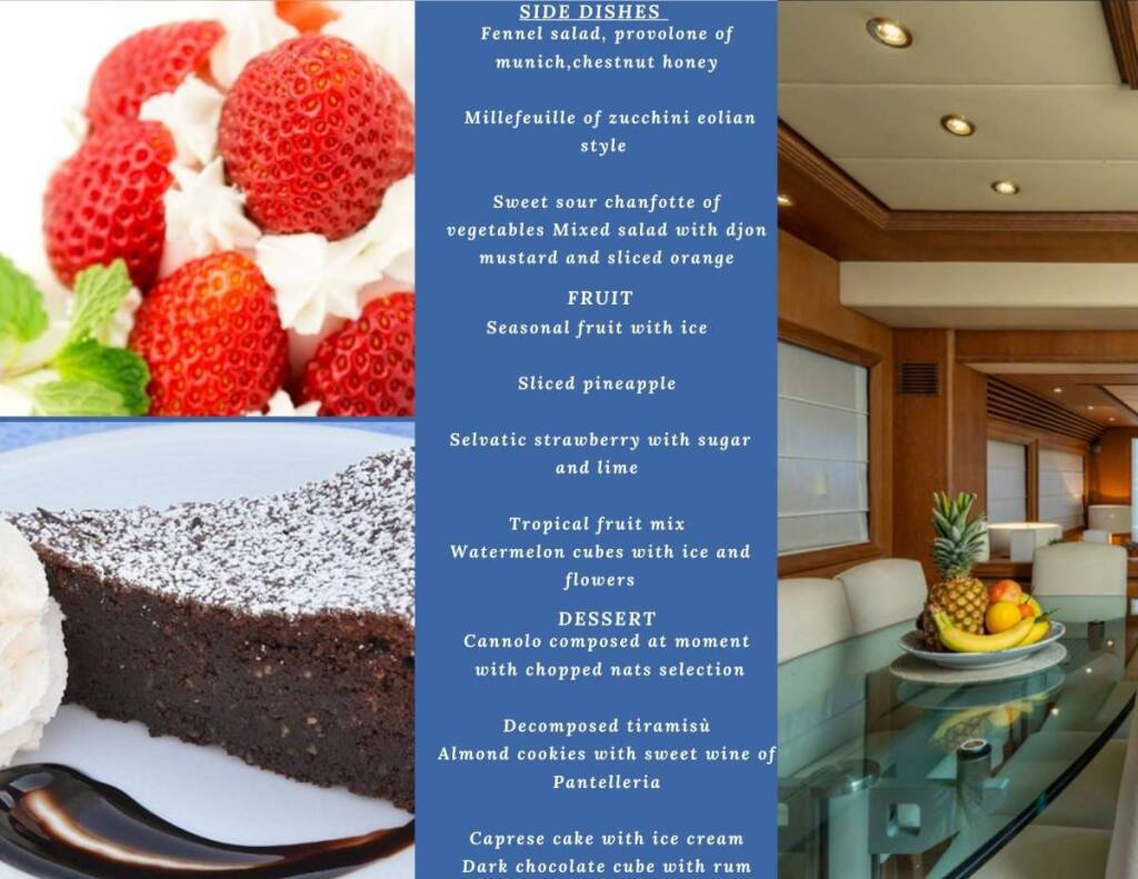 He’s very respectful and discreet, a real lover of the sea and also a great chef. His ability to create a relaxed and cheerful atmosphere on board his yachts has no equals and he’s very skilled in suggesting insider’s restaurants and activities. Italian mother tongue, he also speaks English and French.