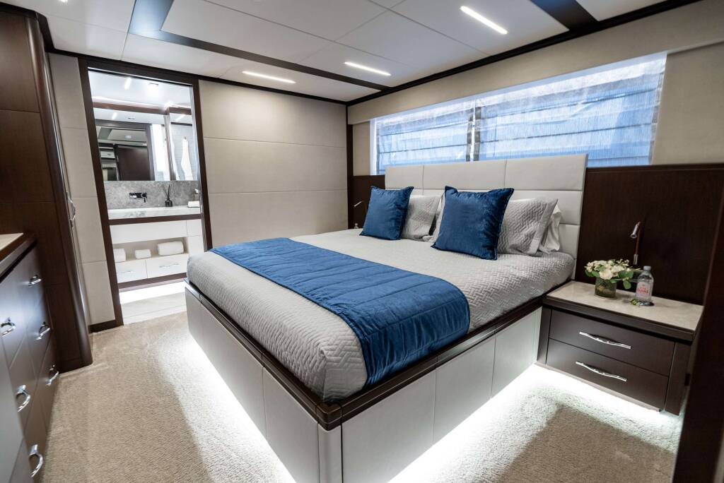 Accommodation: King master on deck, 5 king cabins below