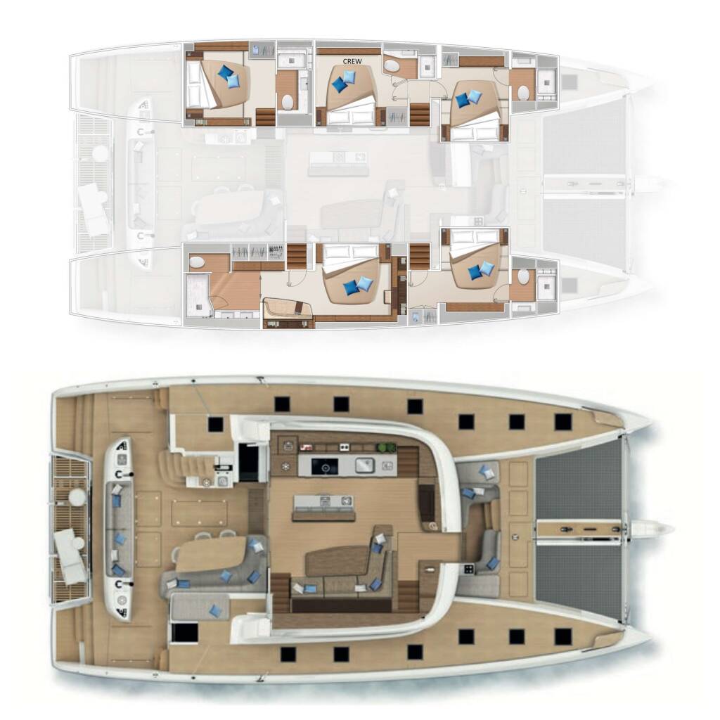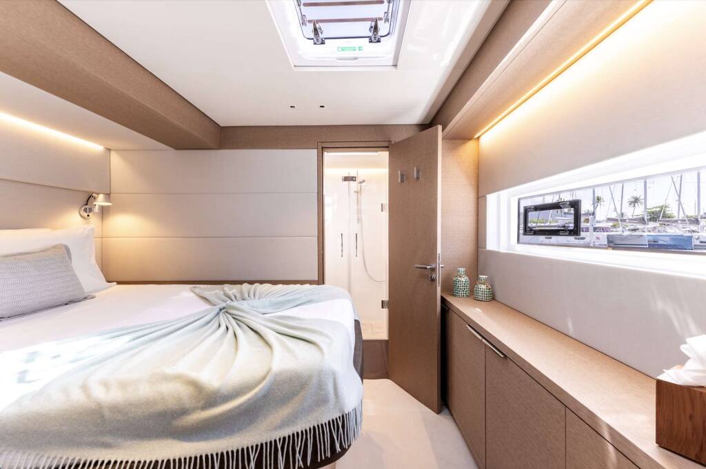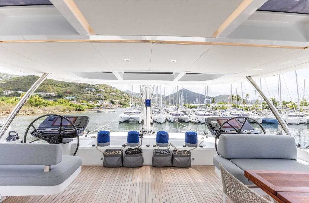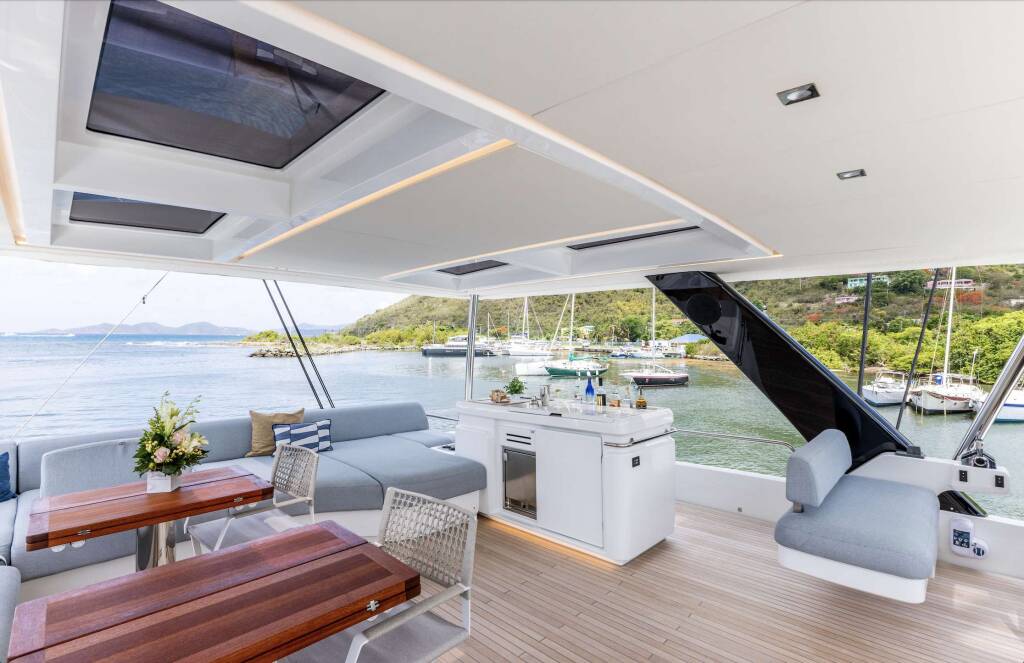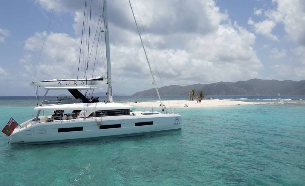 Catamaran de luxe avec équipage AURA, construit en 2023, est amarré en Caribbean Virgin Islands (BVI). Il dispose de 4 cabines et peut accueillir 8 personnes.