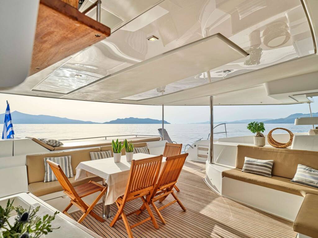 Catamaran de luxe avec équipage HIGH FIVE, construit en 2013, est amarré en Greece. Il dispose de 5 cabines et peut accueillir 10 personnes.