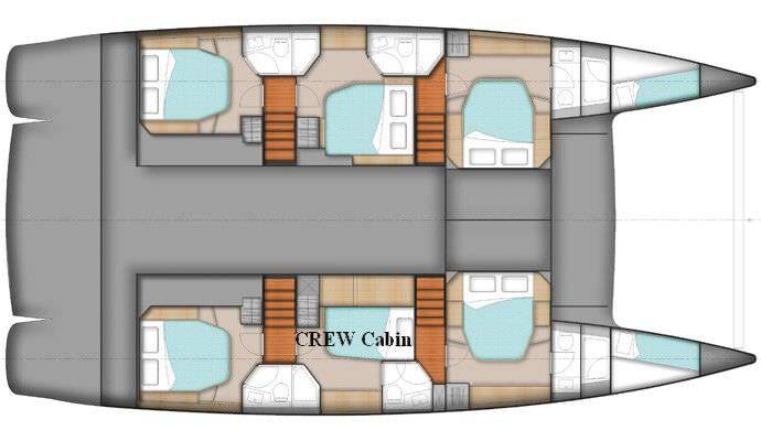 Accommodation: 10 guests in 4 Queen size cabins (1,55 x 2 m) and 1 Double (1,45 x 2 m)