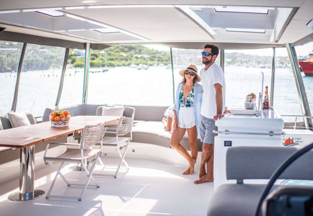 Catamaran de luxe avec équipage JUSTIFIED HORIZONS, construit en 2021, est amarré en Caribbean Virgin Islands (US/BVI), Caribbean Leewards. Il dispose de 5 cabines et peut accueillir 10 personnes.