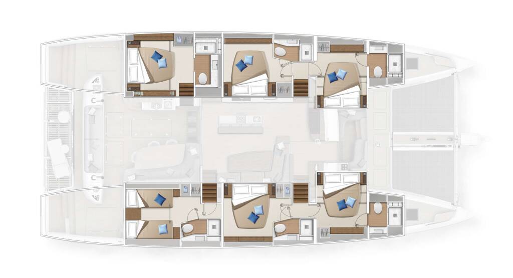 Accommodation: Accommodates 10 guests in 5 ensuite queen cabins