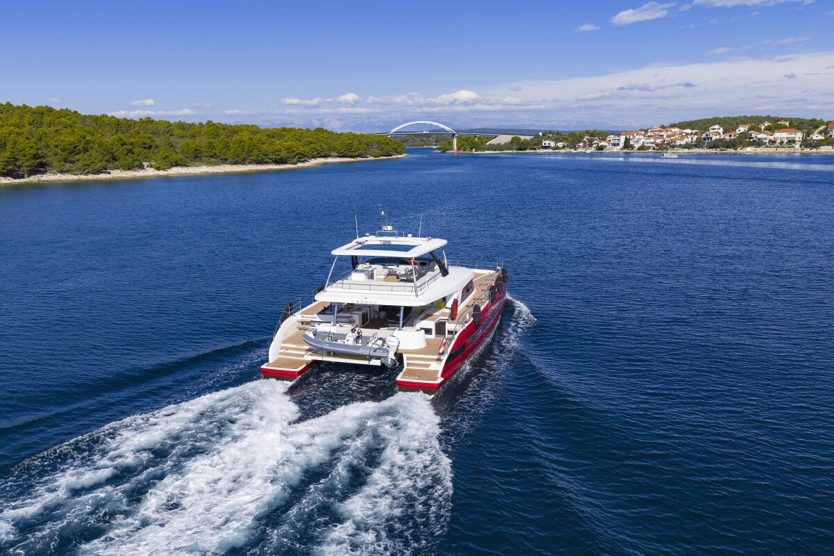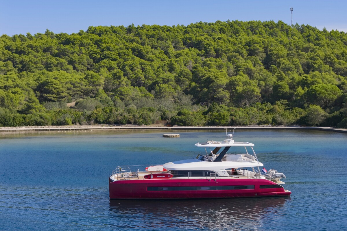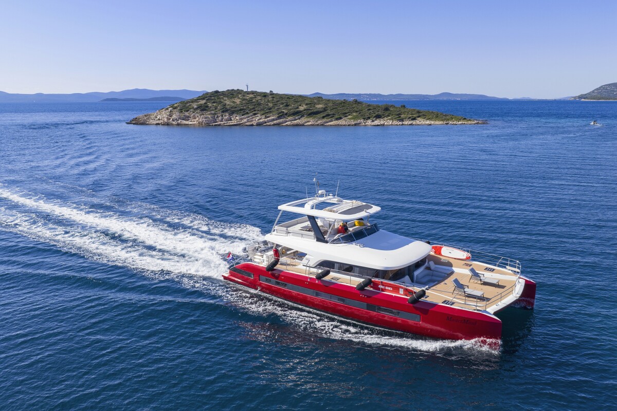 Le Catamaran de luxe avec équipage « Mastermind », construit en 2023, est amarré en Croatie. Le yacht dispose de 4 cabines et peut accueillir 8 personnes.