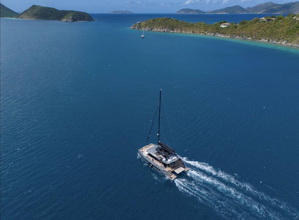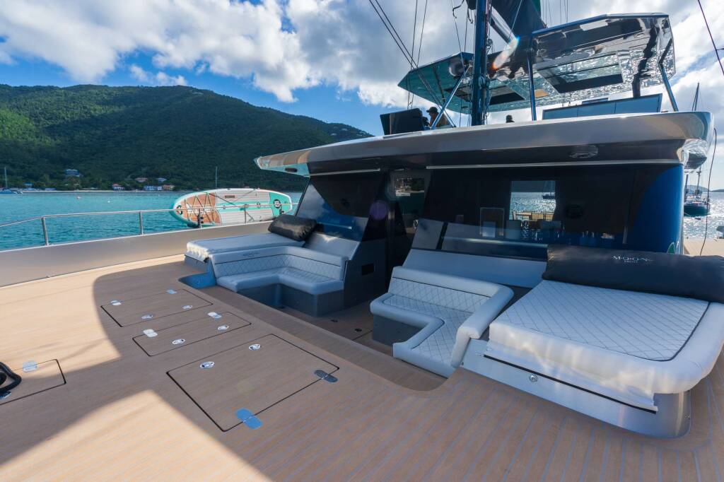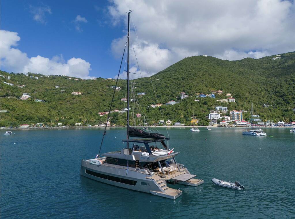 Catamaran de luxe avec équipage Moon Shadow, construit en 2023, est amarré en Caribbean Virgin Islands (US/BVI), Caribbean Leewards. Il dispose de 5 cabines et peut accueillir 10 personnes.