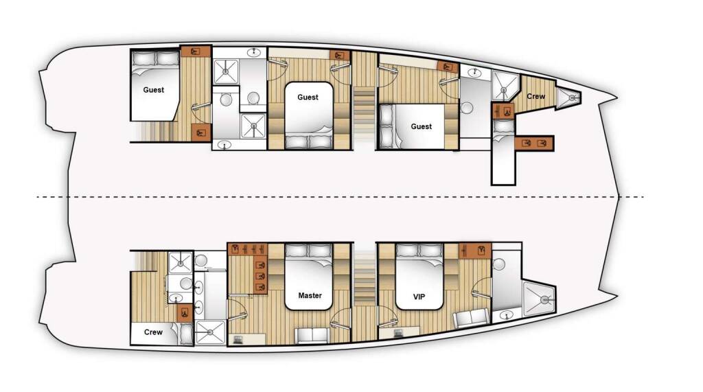 The Moon 6TY offers luxurious accommodations that feel more like a boutique hotel than a yacht. With an emphasis on space, privacy, and comfort, every cabin and lounge area has been designed to elevate your time onboard.