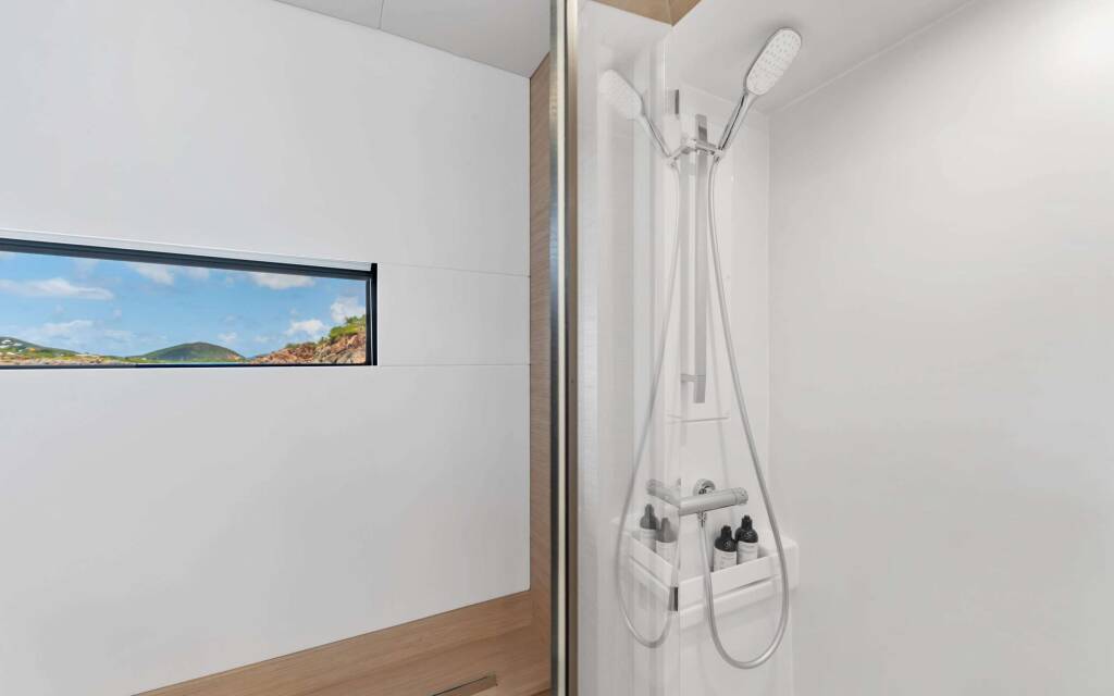 Catamaran de luxe avec équipage PLUS 10, construit en 2025, est amarré en Caribbean Virgin Islands (US/BVI), Caribbean Virgin Islands (US). Il dispose de 5 cabines et peut accueillir 8 personnes.