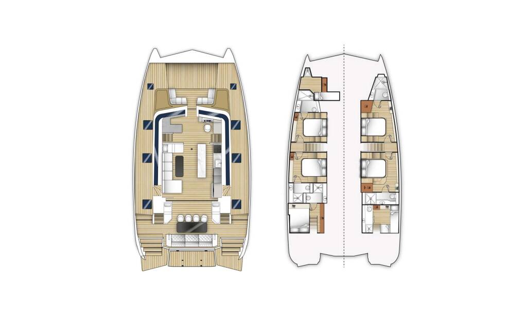 Catamaran de luxe avec équipage SEABARIT LX, construit en 2024, est amarré en Greece. Il dispose de 5 cabines et peut accueillir 10 personnes.