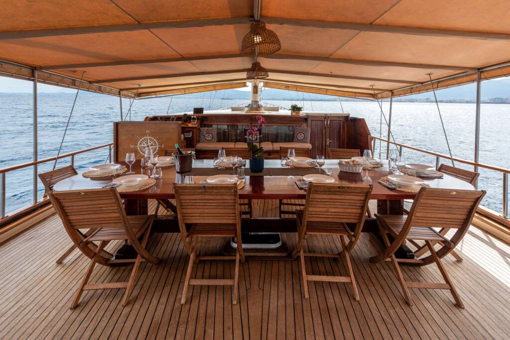 Accommodation: This amazing turkish gulet can accomodate up to 12 guests in 6 double beds cabins with private toilet.