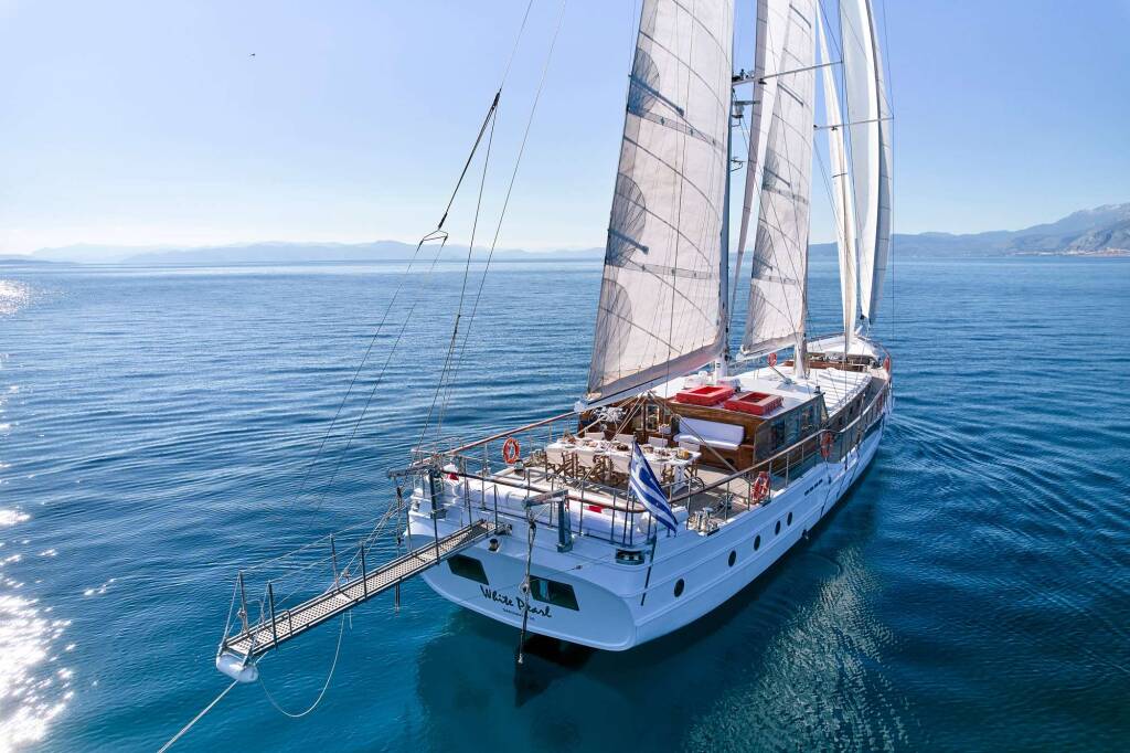 Goélette & Voilier à moteur WHITE PEARL, construit en 1997, est amarré en Greece. Il dispose de 6 cabines et peut accueillir 12 personnes.