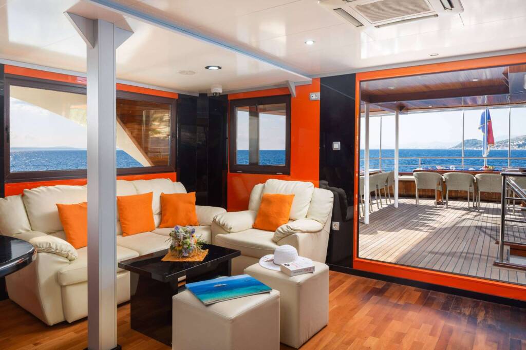 Accommodation: Half board, water, fuel 5hrs per day, electricity, daily cabin cleaning, fresh fruit, WiFi on board. Does not include bar tab, extra food options and water toys, excursions, that can be added APA, nor tips for crew . Also there is small port and tourist tax per week to pay in cash, about 50EUR per person for a week.