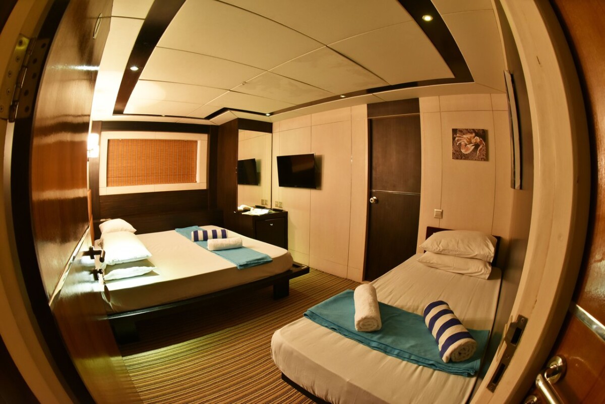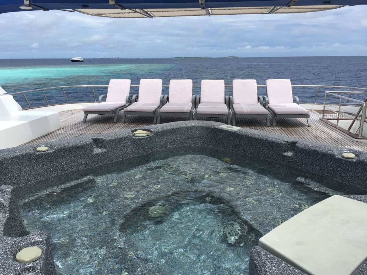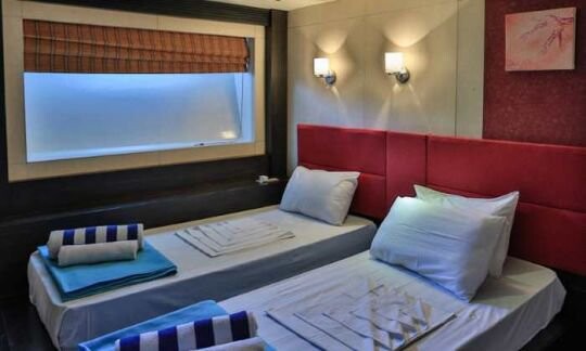 Le Mini-croisière « Honors Legacy », construit en 2012, est amarré en Maldives. Le yacht dispose de 10 cabines et peut accueillir 22 personnes.