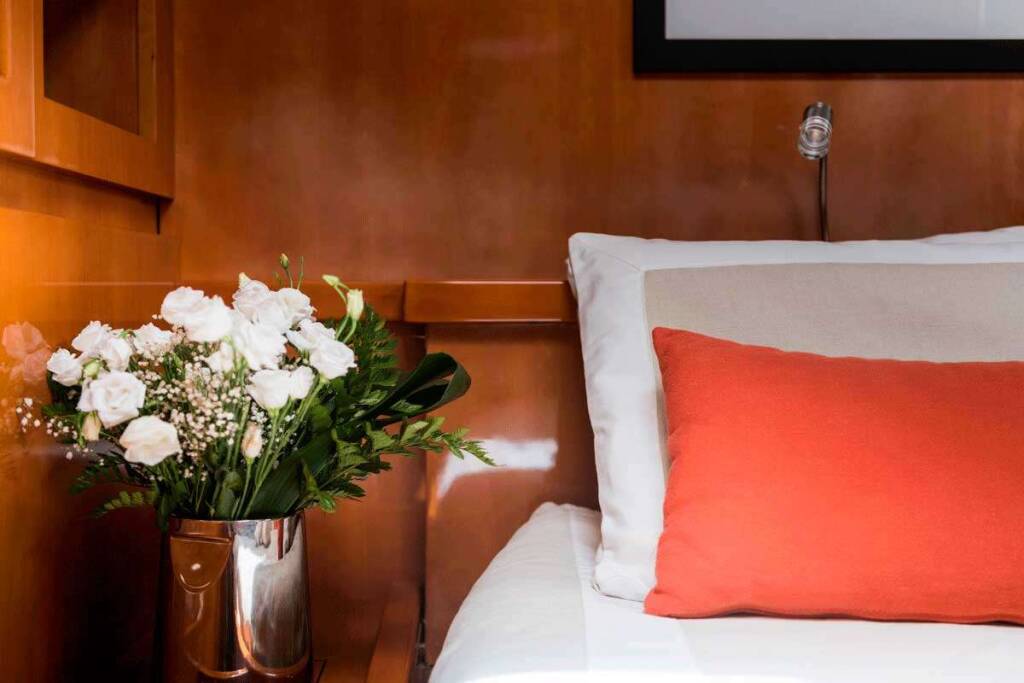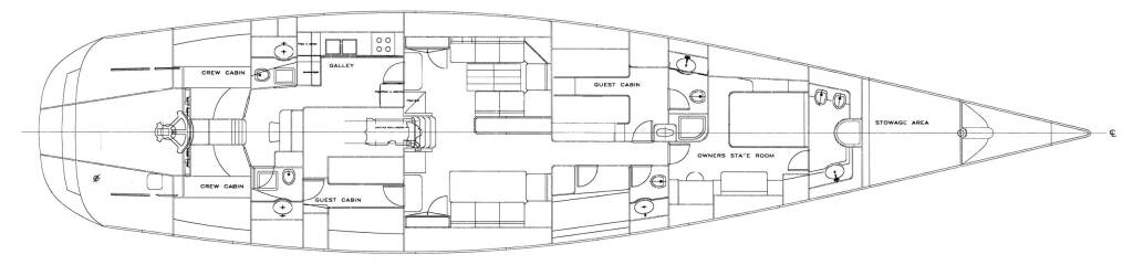 Accommodation: Logica can accommodate up to 8 guests in 4 cabins. The cabins configuration features a Primary Suite up front, 2 twin cabins and 1 bunk cabin.
