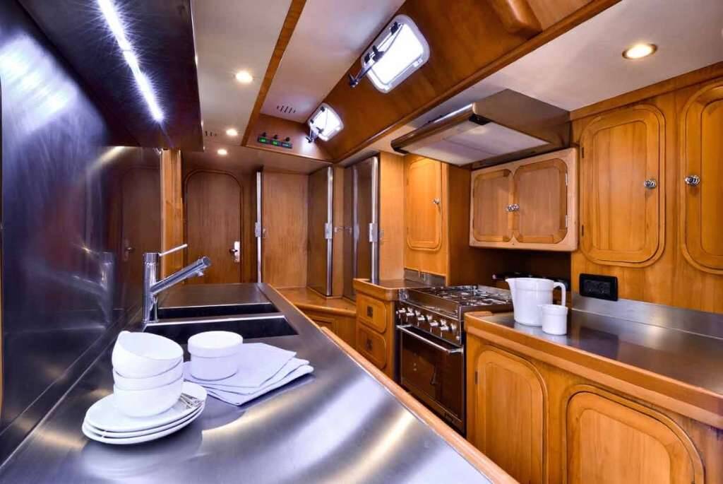 Very bright and well refurbished saloon, separated galley. Crew's quarter with indipendent access from cockpit