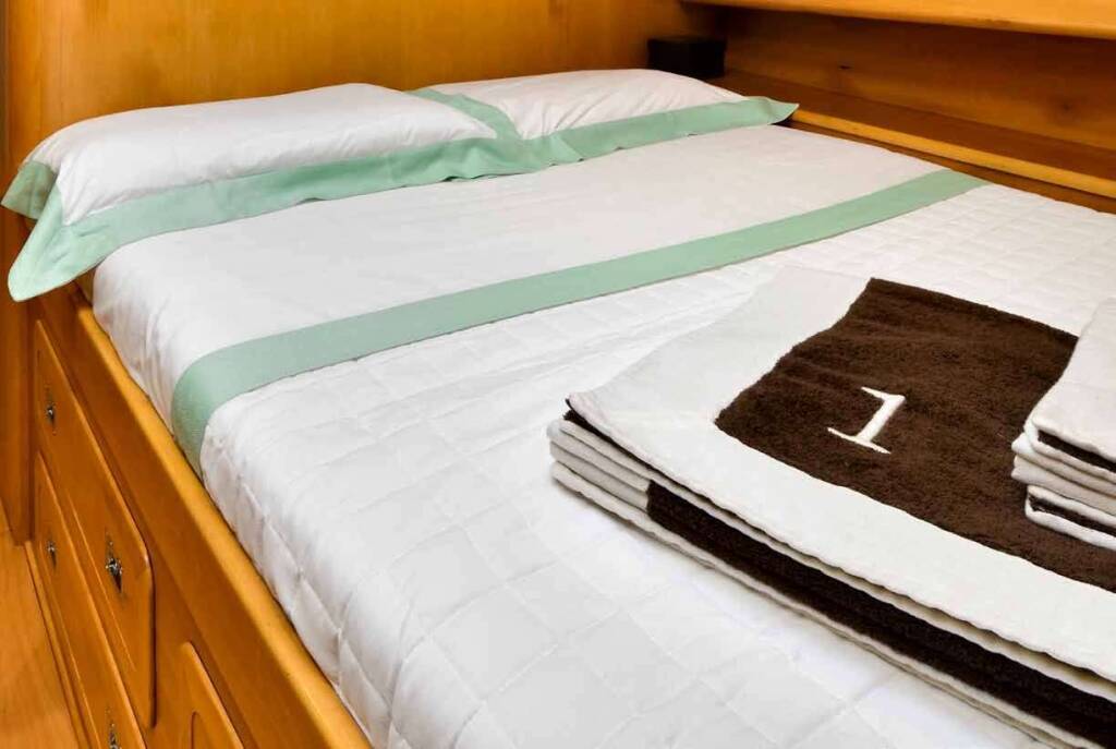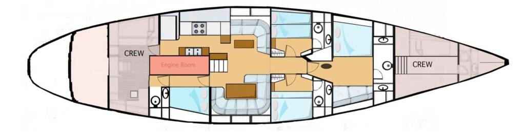 It is possible to have also a 4th cabin, situated in the rear part of the vessel, close to the crew's area: it is a single cabin, but with a comfortable bed (double French size) wich could accommodate 2 young's (with own bathroom).