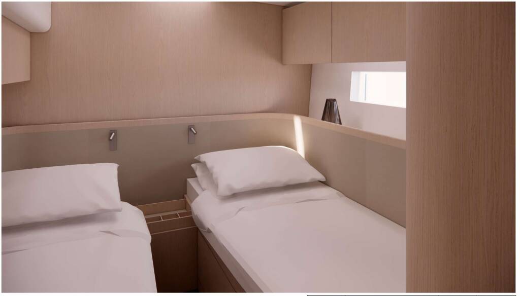 One daybed in the saloon (grey cushion visible in the photo)