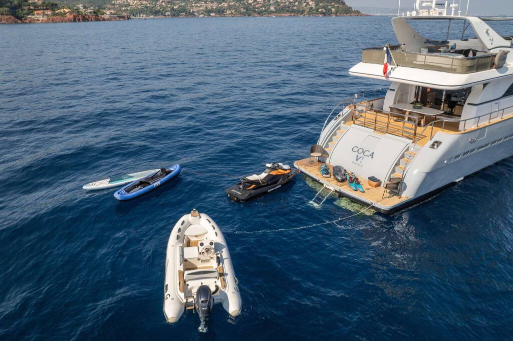 • COCA VI has a beautiful berth in the charming port of Mandelieu, offering views of the castle and a delightful little beach just 500 metres away